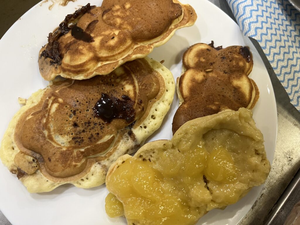 ホットケーキミックスの生地はふわふわ、小麦粉の生地は冷めてもサクサクしていい感じです、味は。