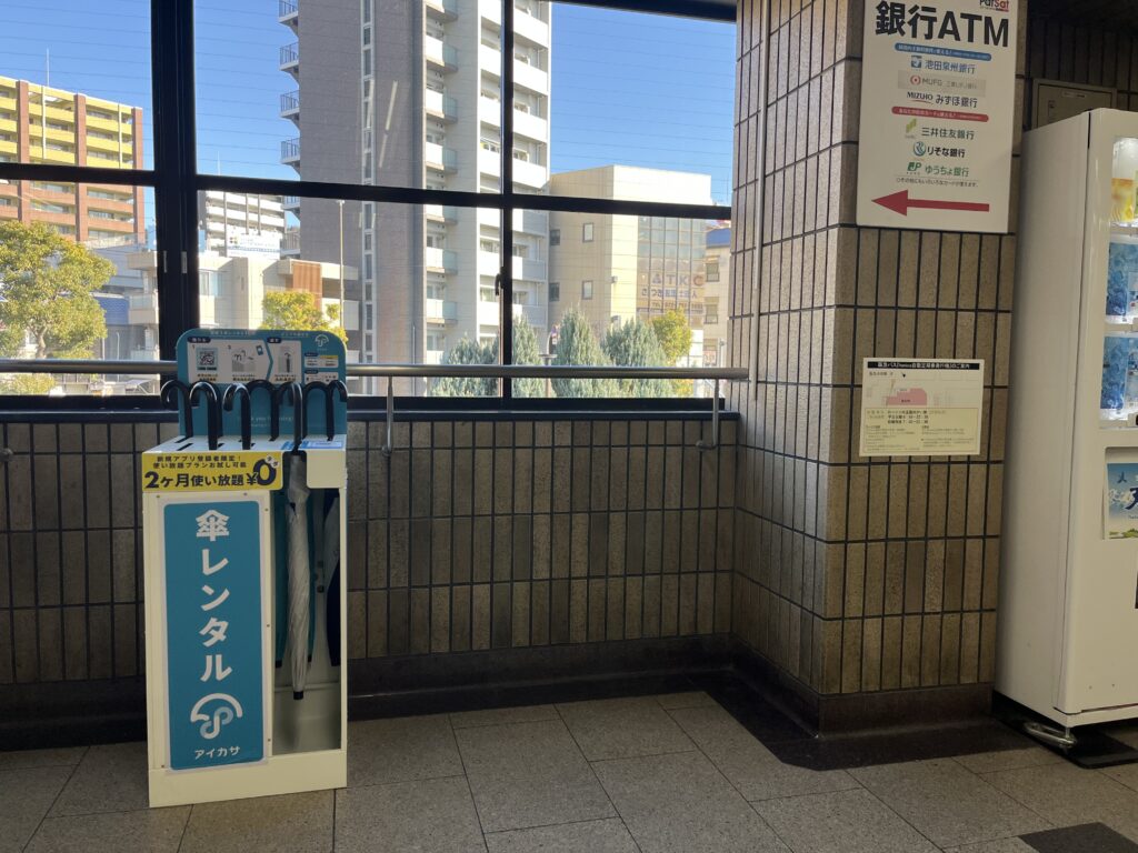 池田駅前に傘のレンタルボックスが出現しました。
