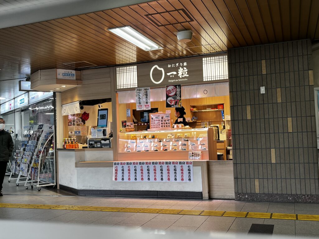 池田駅改札横の「おにぎり家 一粒」では節分の日限定で恵方巻きの販売があるらしい/予約のみの受付だけど当日予約でもいいんだって。