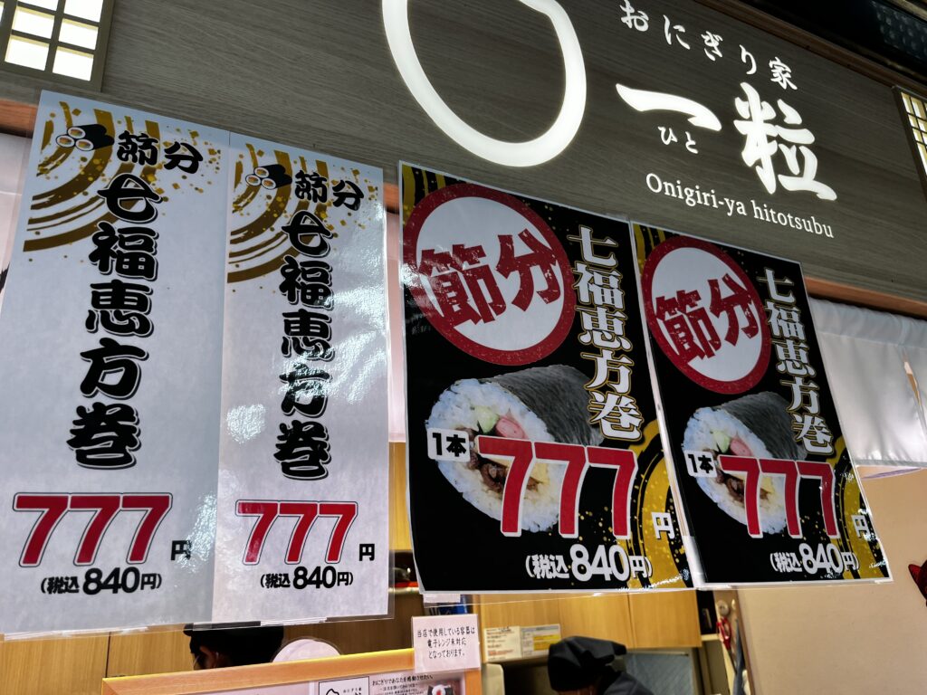 池田駅改札を出てすぐ右側にある「おにぎり家 一粒(ひとつぶ)」では節分の日(2/3)限定で恵方巻の販売をするそうです。