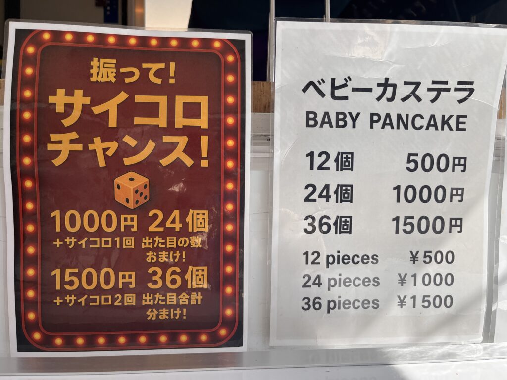 ベビーカステラ、めずらしいわけではないのですが、よくよく見ているとよくある夜店のベビーカステラとはちょっと違うような。