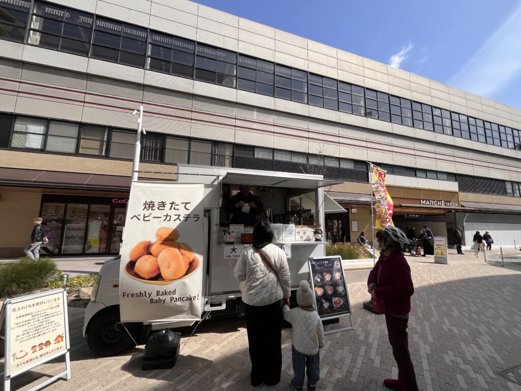 先日、クレパを通りがかるとベビーカステラのキッチンカーが来ていました。