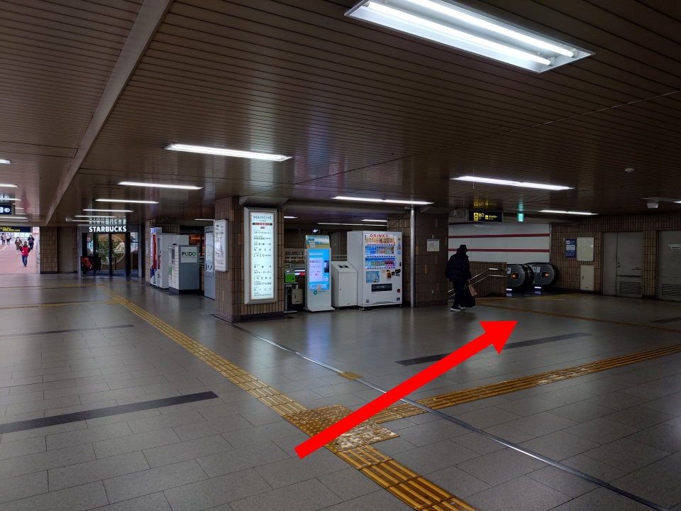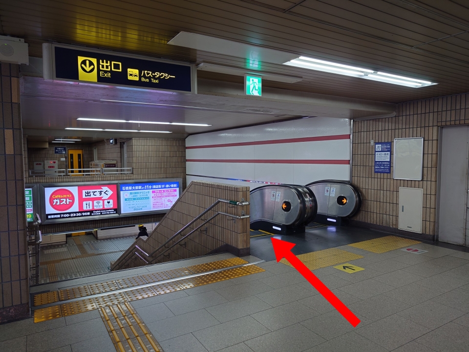 こちらのエスカレーターを降りましょう。