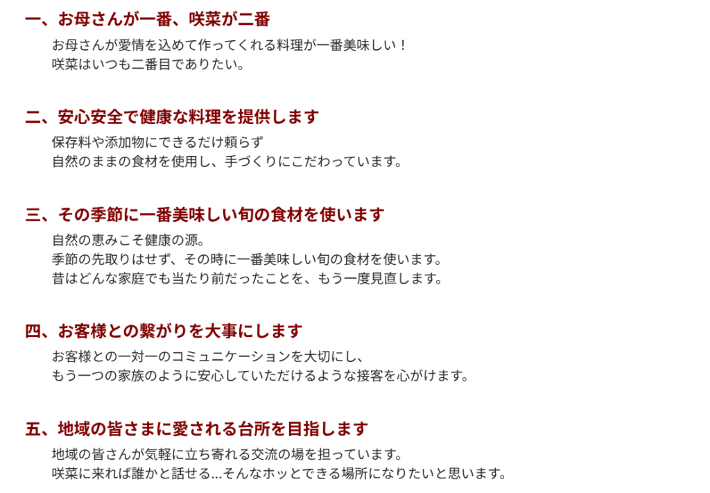 健康咲かせる手づくり惣菜 咲菜ホームページより https://okayamafs.com/chisou/concept.html