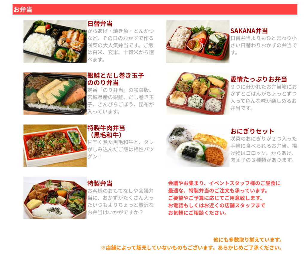 健康咲かせる手づくり惣菜 咲菜ホームページより https://okayamafs.com/chisou/obentousouzai.html