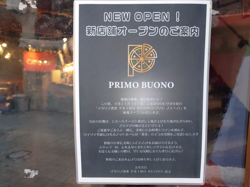 石橋パラダイス通りにできたイタリア食堂「 PRIMO BUONO(プリモボーノ) 」さんで自慢の「PRIMO PIZZA(プリモピッツア)」をいただいてきた / 以前、「肉バル Moooh!!」さんがあったところ