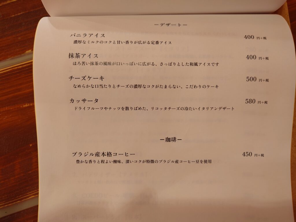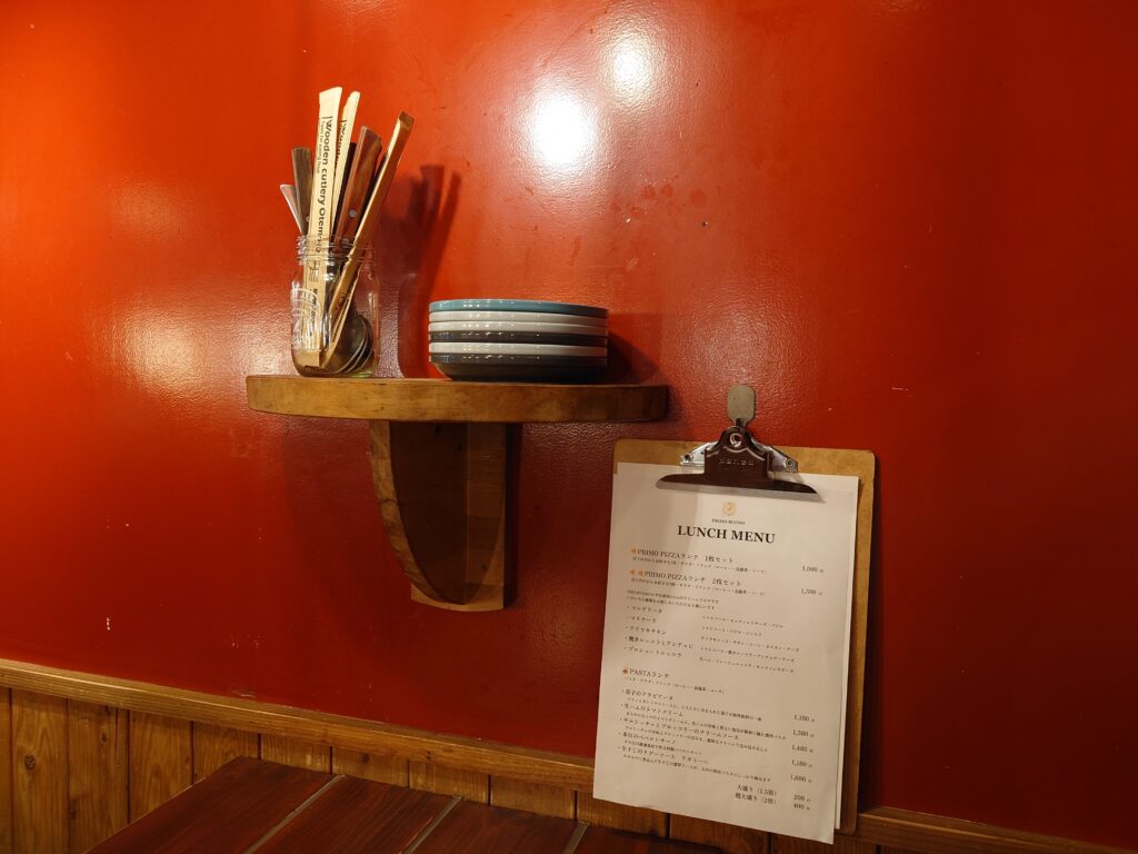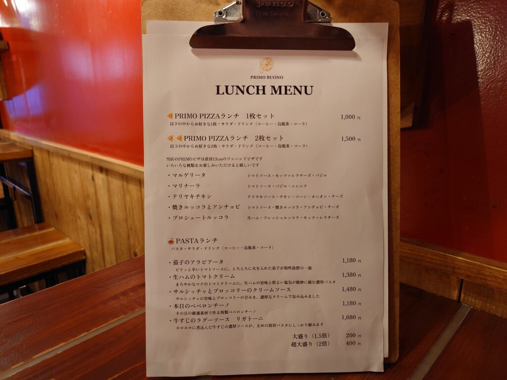 こちらがランチのメニュー。アンチョビが大好きなので、「焼きルッコラとアンチョビのピザ」に即決!