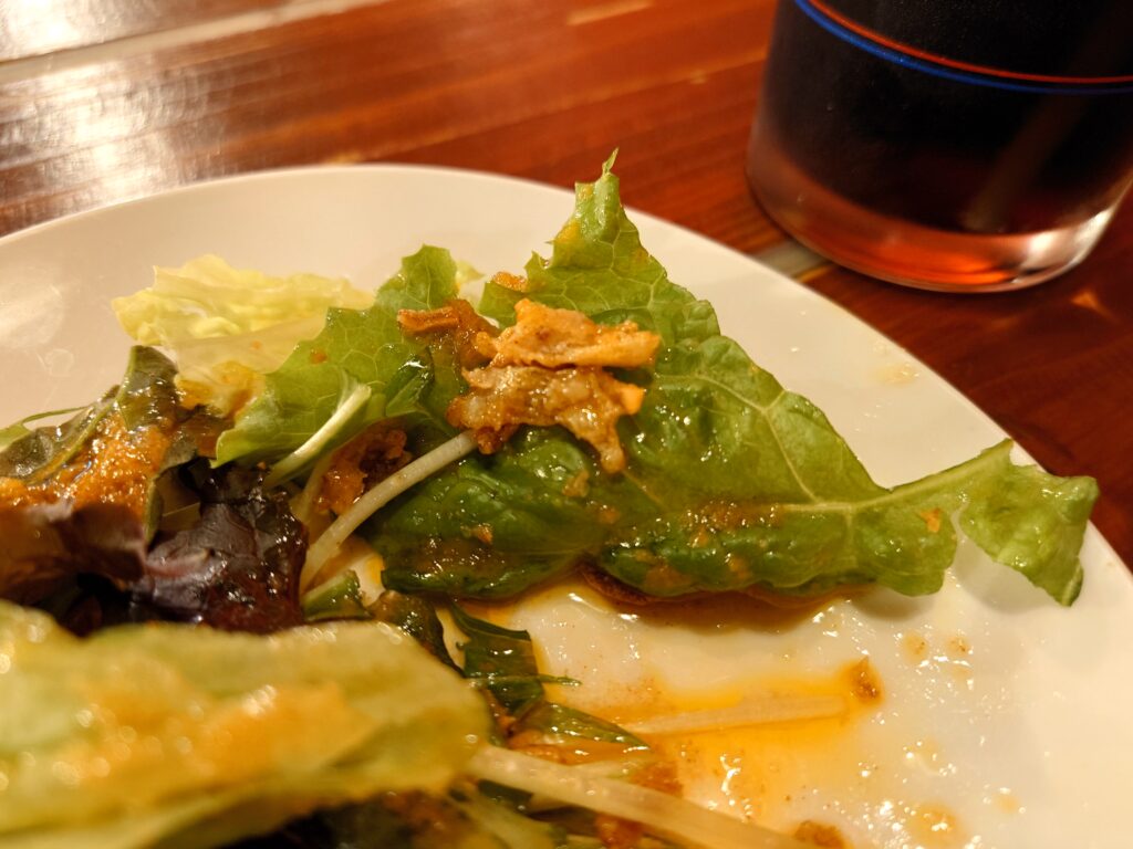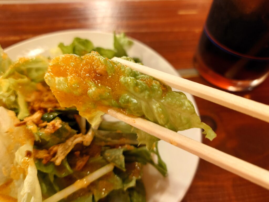 ドレッシングはにんじんのすりおろしにビネガーを合わせたものだそうです。ビネガーの酸味が食欲をそそります。
