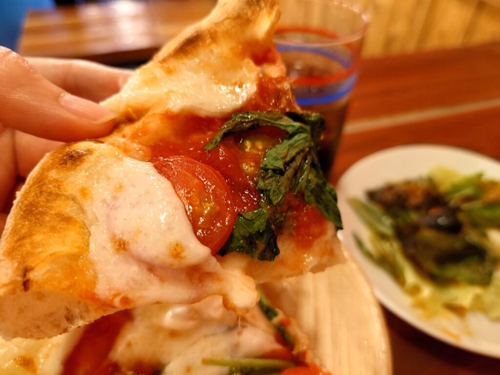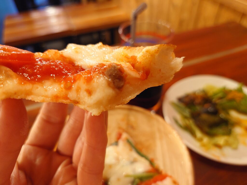 そしてお待ちかねの「焼きルッコラとアンチョビのピザ」の到着です。
