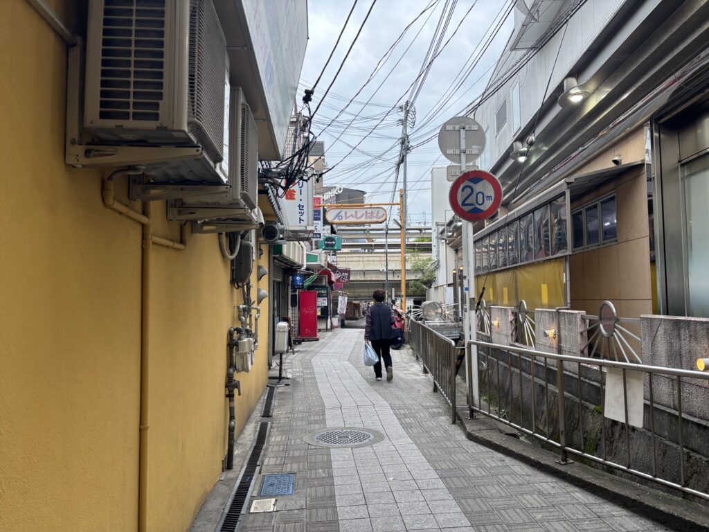 うどん屋さんの手前を右に曲がり、