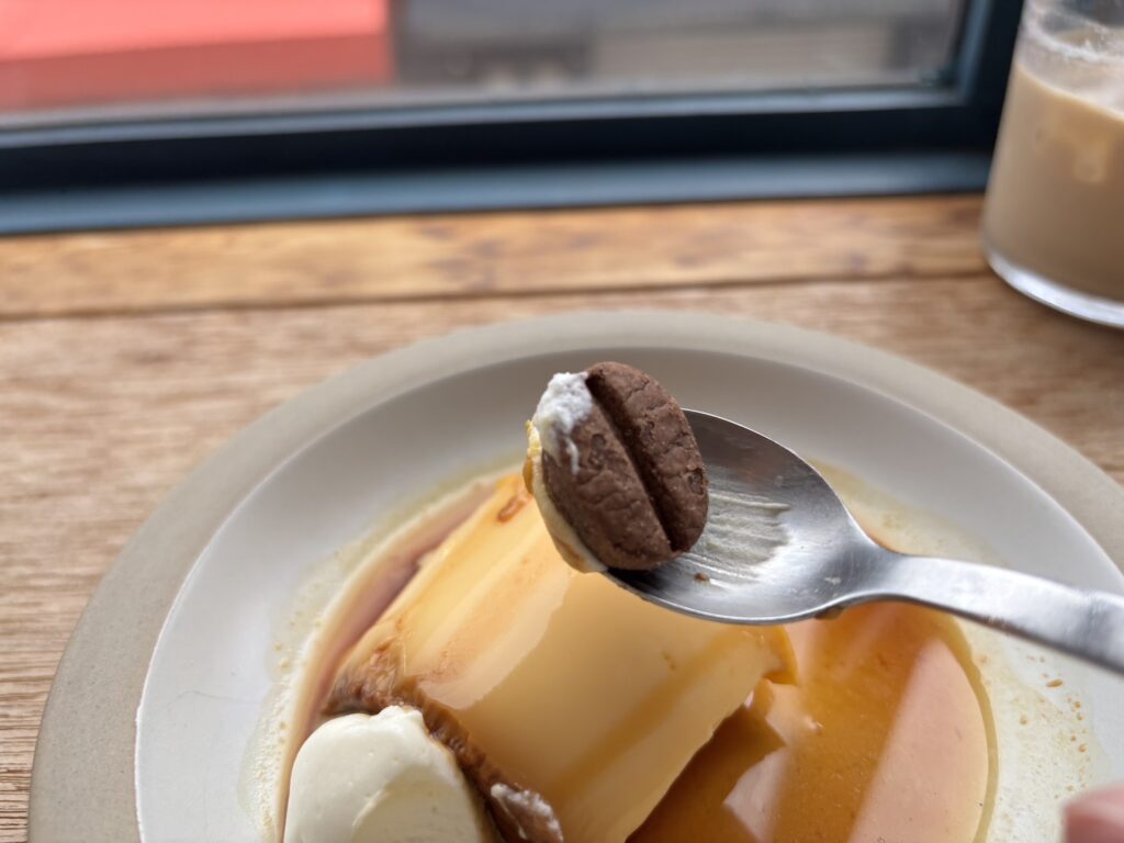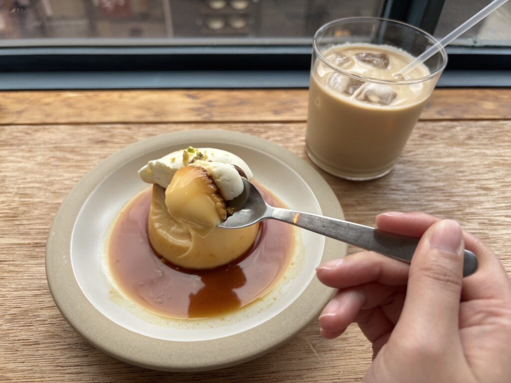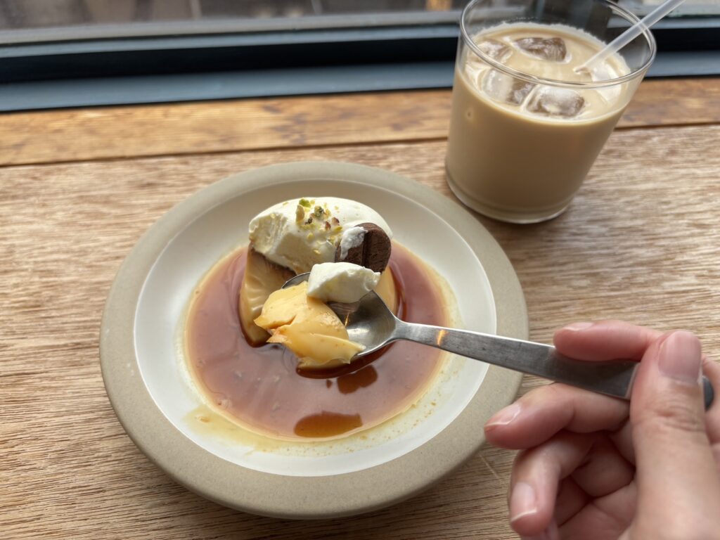 カラメルはほろ苦く、どこか懐かしい何度も食べに通いたくなるお味で、濃厚な生クリームとの相性も抜群です。