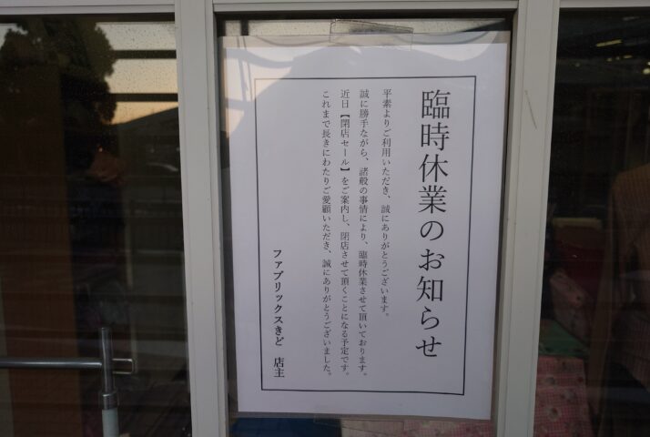 • [ 休業/閉店情報 ] 阪急池田駅直結、ステーションNビルの手芸用品店「きどファブリックス」さんが休業中。近日閉店セールをするそうです