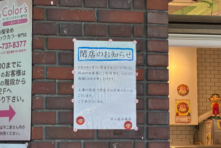 • [ 閉店情報 ] 不二家石橋店が5月3日(日)に閉店するみたい