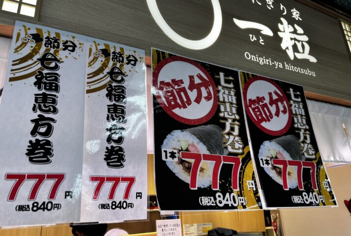 • 池田駅改札横の「おにぎり家 一粒」では節分の日限定で恵方巻きの販売があるらしい/予約のみの受付だけど当日予約でもいいんだって。